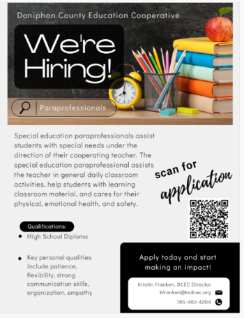 DCEC is seeking a paraprofessional for Troy Middle School.