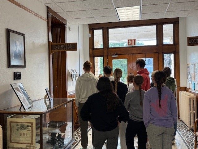 Troy High School Seniors visited the Doniphan County Courthouse on Tuesday, October 7 to help with the testing of election equipment. They also toured the courthouse and learned about the functions of the various departments. Thank you to Mr. Derek Frieling, Mrs. Amanda Rullman, and County Clerk Peggy Franken for facilitating the event.
