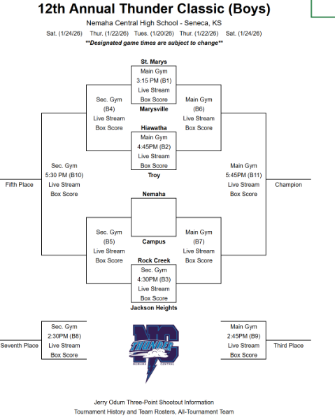 Troy HS Girls and Boys Tournament Schedule for Nemaha Central BB Tournament - 1/20-1/24