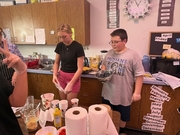 Pic 2: Senior Harper Whetstine and Sixth Grader Conor Hanlan prepare parfaits.