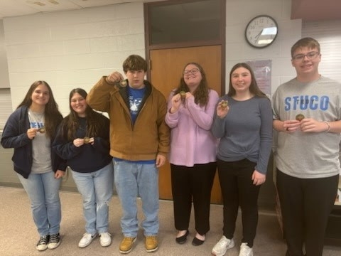 The JV Scholars Bowl Team travelled to Frankfort on Nov. 11th, where they competed alongside 17 teams. In the first 8 rounds of pool play, they went (6-2), to qualify for finals. In the finals rounds they went (2-0), defeating St John's and Blue Valley Randolph to place 1st. The team consisted of Lydia Kretzinger, Colton Sigrist, Jaclyn Jenkins, Jack Keller, and Hailey Sigrist, with AnnaMaria Root as an alternate. The team's next meet is Dec. 2nd at DWest, where the Varsity team will also compete. Thank you to Coach Theresa Root for sponsoring the event.